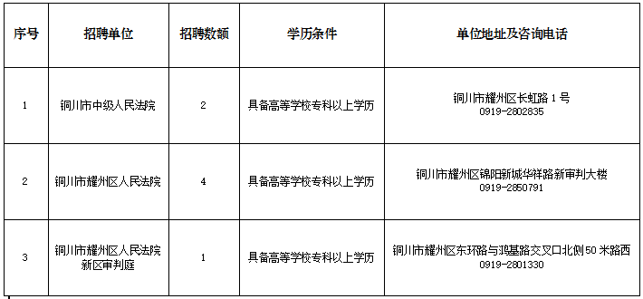 《銅川法院2023年度面向社會(huì)公開招聘聘用制書記員職位表》